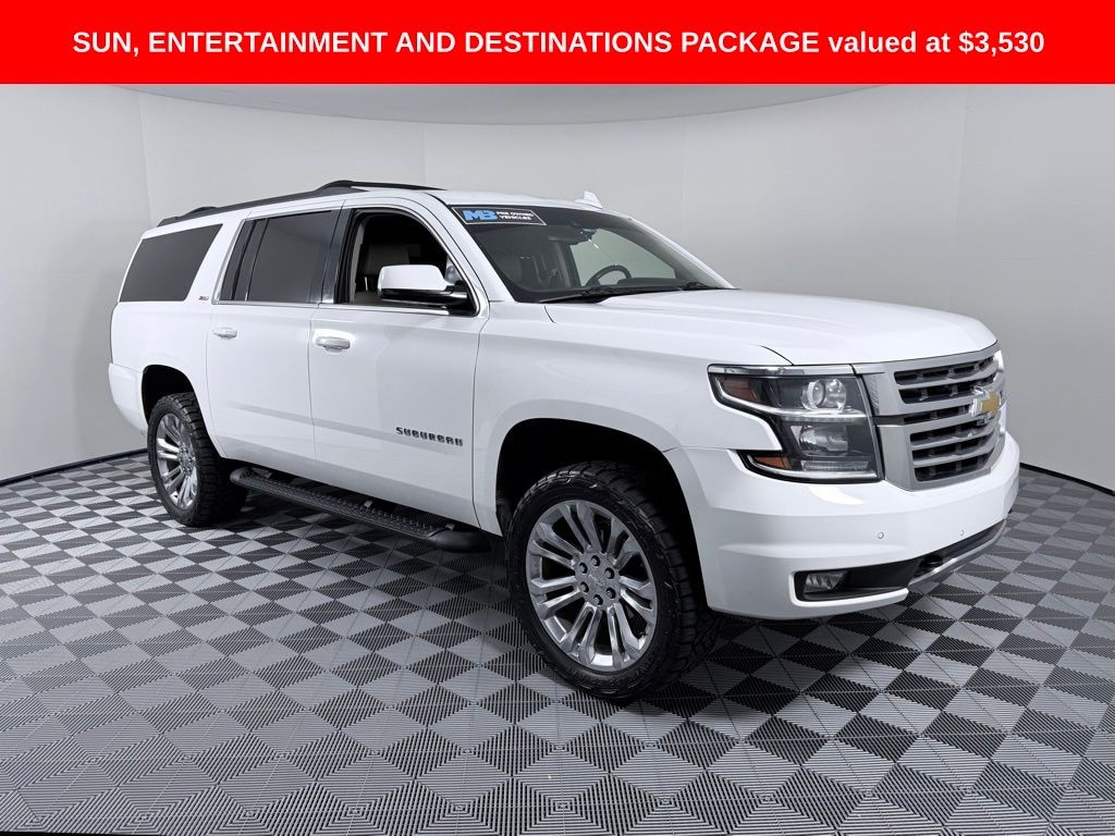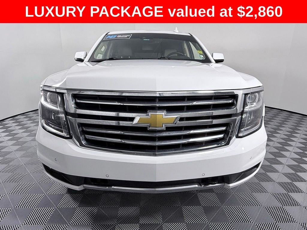 12-Volt Auxiliary Power Outlet (5), 18" x 8.5" High-Polished Aluminum Finish Wheels, 1st & 2nd Row Color-Keyed Carpeted Floor Mats, 2 Front Frame-Mounted Black Recovery Hooks, 2-Speed Active Electronic AutoTrac Transfer Case, 2nd Row 60/40 Split-Folding Manual Bench, 2nd Row Pwr Release 60/40 Split Folding Bench Seat, 3rd Row 60/40 Power Fold Split-Bench, 3rd Row DVD Screen, 3rd Row Manual 60/40 Split-Folding Fold Flat Bench, 3rd row seats: split-bench, 4-Wheel Antilock Disc Brakes, 4-Wheel Disc Brakes, 6-Way Power Front Passenger Seat Adjuster, 9 Speakers, ABS brakes, Adjustable pedals, Air Conditioning, Alloy wheels, AM/FM radio: SiriusXM, AM/FM Stereo w/Navigation, Apple CarPlay/Android Auto, Auto High-beam Headlights, Auto-Dimming Inside Rear-View Mirror, Auto-dimming Rear-View mirror, Automatic Emergency Braking, Automatic temperature control, Black Assist Steps, Black Roof Rack Cross Bars, Black Tubular Assist Steps, Bose Premium Audio System Feature, Brake assist, Bumpers: body-color, CD player, Color-Keyed Carpeting Floor Covering, Compass, Delay-off headlights, Driver door bin, Driver Inboard & Front Passenger Airbags, Driver vanity mirror, Dual front impact airbags, Dual front side impact airbags, Electronic Cruise Control w/Set & Resume Speed, Electronic Stability Control, Emergency communication system: OnStar and Chevrolet connected services capable, Enhanced Driver Alert Package, Extended-Range Remote Keyless Entry, Exterior Parking Camera Rear, Floor Console w/Storage Area, Fog Lamps, Forward Collision Alert, Front & Rear Park Assist, Front anti-roll bar, Front Bucket Seats, Front Center Armrest, Front dual zone A/C, Front reading lights, Front wheel independent suspension, Fully automatic headlights, Garage door transmitter, Hands-Free Power Liftgate, HD Radio, Heated 2nd Row Outboard Seats, Heated door mirrors, Heated Front Reclining Bucket Seats, Heated front seats, Heated Leather Wrapped Steering Wheel, Hill Descent Control, Illuminated entry, IntelliBeam w/Automatic High Beam On/Off, Lane Change Alert w/Side Blind Zone Alert, Lane Keep Assist w/Lane Departure Warning, Leather steering wheel, Leather-Appointed Seat Trim, Leather-Wrapped Steering Wheel, Low tire pressure warning, Luxury Package, Memory seat, Memory Settings, Occupant sensing airbag, Off-Road Z71 Suspension Package, Outside temperature display, Overhead airbag, Overhead console, Panic alarm, Passenger door bin, Passenger vanity mirror, Passive Entry System, Pedal memory, Power door mirrors, Power driver seat, Power Folding & Adjustable Heated Outside Mirrors, Power Liftgate, Power passenger seat, Power Release 2nd Row Bucket Seats, Power steering, Power Tilt & Telescoping Steering Column, Power Tilt-Sliding Sunroof w/Express-Open/Close, Power windows, Power-Adjustable Accelerator & Brake Pedals, Preferred Equipment Group 1LT, Premium Smooth Ride Suspension Package, Push Button Keyless Start, Radio: AM/FM Stereo w/Chevrolet Infotainment, Rain sensing wipers, Rear air conditioning, Rear anti-roll bar, Rear Cross Traffic Alert, Rear Park Assist w/Audible Warning, Rear reading lights, Rear seat center armrest, Rear Seat Entertainment System, Rear window defroster, Rear window wiper, Remote keyless entry, Remote Vehicle Start, Roof-Mounted Luggage Rack Side Rails, Safety Alert Seat, Security system, Single-Slot CD/MP3 Player, SiriusXM NavTraffic, SiriusXM Radio, Skid Plate Package, Speed control, Speed-sensing steering, Split folding rear seat, Spoiler, Steering wheel mounted audio controls, Sun, Entertainment & Destinations Package, Tachometer, Telescoping steering wheel, Tilt steering wheel, Traction control