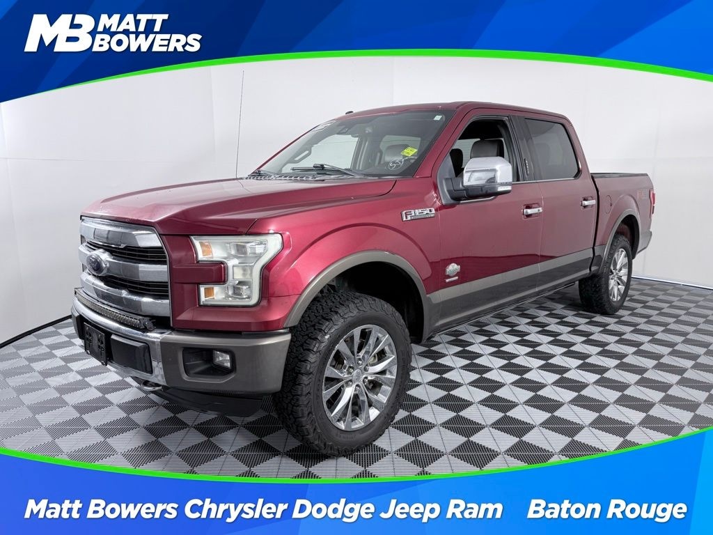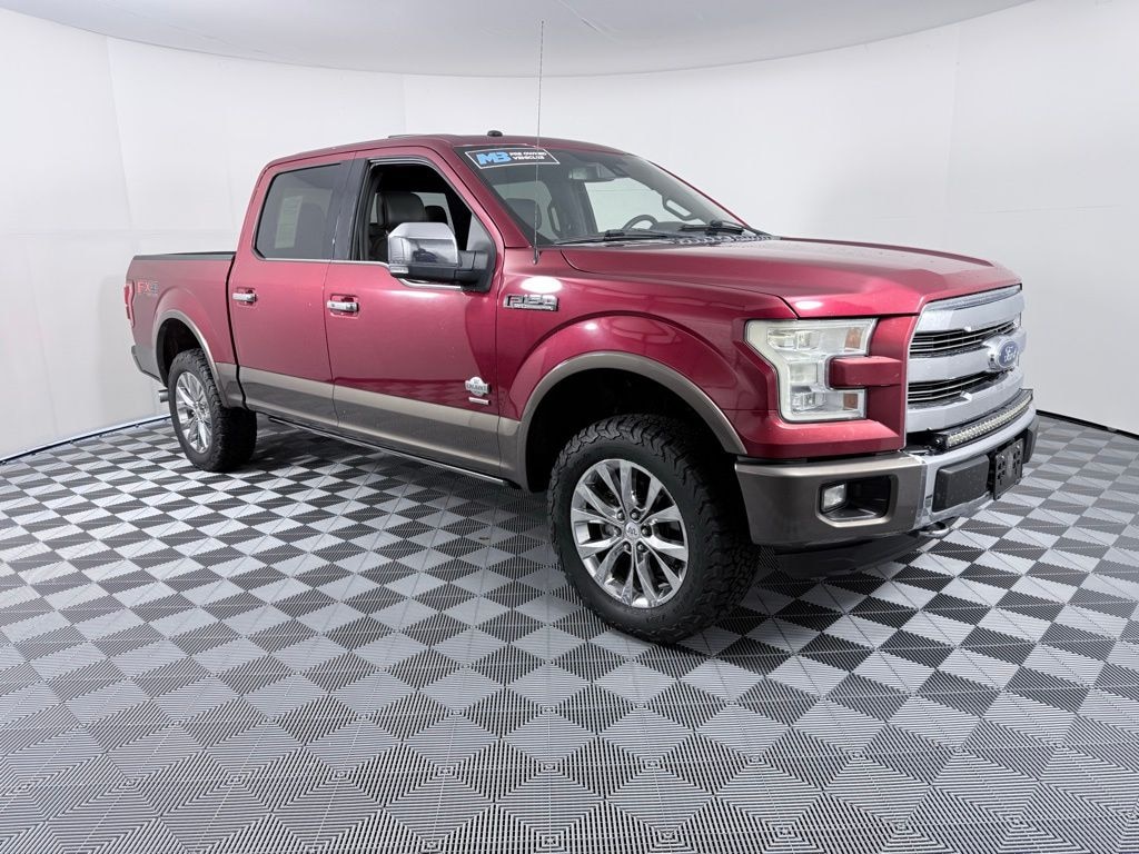 10 Speakers, 18" Machined-Aluminum Wheels, 20" Machined-Aluminum Wheels, 4-Wheel Disc Brakes, 4x4 FX4 Off-Road Bodyside Decal, ABS brakes, Adjustable pedals, Air Conditioning, Alloy wheels, AM/FM radio: SiriusXM, Auto High Beam w/Rain-Sensing Windshield Wipers, Auto tilt-away steering wheel, Auto-dimming door mirrors, Auto-dimming Rear-View mirror, Automatic temperature control, Auxiliary Transmission Oil Cooler, BLIS Blind Spot Information System, Brake assist, Bright Belt Moldings, Bumpers: chrome, CD player, Chrome 3-Bar Style Grille w/Chrome Surround, Chrome Door Handles w/Body-Color Strap, Chrome Skull Caps on Exterior Mirrors, Class IV Trailer Hitch Receiver, Compass, Delay-off headlights, Driver door bin, Driver vanity mirror, Dual front impact airbags, Dual front side impact airbags, Electronic Stability Control, Equipment Group 601A Luxury, Extended Range 36 Gallon Fuel Tank, Exterior Parking Camera Rear, Front & Rear Off-Road Tuned Shock Absorbers, Front anti-roll bar, Front Bucket Seats, Front Center Armrest, Front dual zone A/C, Front fog lights, Front License Plate Bracket, Front reading lights, Front wheel independent suspension, Fully automatic headlights, FX4 Off-Road Package, Garage door transmitter, Genuine wood dashboard insert, Genuine wood door panel insert, Heated door mirrors, Heated front seats, Heated rear seats, Heated steering wheel, Hill Descent Control, Illuminated entry, Inflatable Rear Safety Belts, Integrated Trailer Brake Controller, King Ranch Chrome Appearance Package, King Ranch Leather Bucket Seats, Lane-Keeping System, Low tire pressure warning, Max Trailer Tow Package, Memory seat, Multi-Contour Driver & Passenger Seats, Navigation System, Occupant sensing airbag, Outside temperature display, Overhead airbag, Overhead console, Panic alarm, Passenger door bin, Passenger vanity mirror, Pedal memory, Power door mirrors, Power driver seat, Power passenger seat, Power steering, Power windows, Power-Deployable Running Boards, Pro Trailer Backup Assist, Radio data system, Radio: Sony Single CD w/HD & SiriusXM Satellite, Rear Parking Sensors, Rear reading lights, Rear seat center armrest, Rear step bumper, Rear window defroster, Remote keyless entry, Security system, Speed control, Speed-sensing steering, Split folding rear seat, Steering wheel memory, Steering wheel mounted audio controls, SYNC 3, Tachometer, Tailgate Step w/Tailgate Lift Assist, Technology Package, Telescoping steering wheel, Tilt steering wheel, Traction control, Trip computer, Turn signal indicator mirrors, Twin Panel Moonroof, Upgraded Front Stabilizer Bar, Variably intermittent wipers, Ventilated front seats, Voice-Activated Navigation, Voltmeter, Wheels: 20" Chrome-Like PVD. 16/22 City/Highway MPG Recent Arrival! Odometer is 6648 miles below market average!