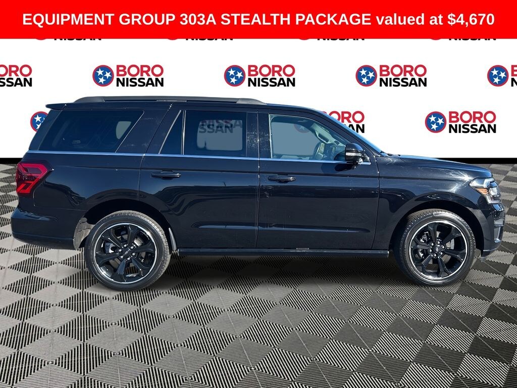 12 Speakers, 1st & 2nd Row Floor Mats w/Logo, 26mm Engine Radiator, 360-Degree Camera w/Split View, 360-Degree Camera w/Trailer Reverse Guidance, 3rd row seats: split-bench, 4-Wheel Disc Brakes, ABS brakes, Adjustable pedals, Air Conditioning, Alloy wheels, AM/FM radio, Auto High-beam Headlights, Auto Start-Stop Removal (DISC), Auto-dimming door mirrors, Auto-dimming Rear-View mirror, Automatic temperature control, Black Headlamp and Fog Lamp Bezels, Black Rear Bumper, Black Roof Rack Side Rails, Body Color Door Handles, Brake assist, Bumpers: body-color, Compass, Connected Built-In Navigation, Delay-off headlights, Driver door bin, Driver vanity mirror, Dual front impact airbags, Dual front side impact airbags, Ebony Black Bar and Mesh Grille, Ebony Black Power Deployable Running Boards, Ebony Black Tailgate Applique, Electronic Stability Control, Emergency communication system: SYNC 4 911 Assist, Equipment Group 303A Stealth Package, Exterior Parking Camera Rear, Four wheel independent suspension, Front anti-roll bar, Front Bucket Seats, Front Center Armrest, Front dual zone A/C, Front fog lights, Front reading lights, Fully automatic headlights, Garage door transmitter, Hands-Free Foot-Activated Liftgate Removal (DISC), Heated & Ventilated Leather Front Captain's Chairs, Heated door mirrors, Heated front seats, Heated rear seats, Heated steering wheel, Heated/Ventilated Lthr Front Captain's Chairs (A), Heavy-Duty Trailer Tow Package, Illuminated entry, Integrated Trailer Brake Controller, Leather steering wheel, LED Taillamp w/Black Bezels, Low tire pressure warning, Memory seat, Navigation System, Occupant sensing airbag, Outside temperature display, Overhead airbag, Overhead console, Panic alarm, Passenger door bin, Passenger vanity mirror, Pedal memory, Power door mirrors, Power driver seat, Power Liftgate, Power moonroof, Power passenger seat, Power steering, Power windows, Power-Folding Sideview Mirrors w/Autofold, Pro Trailer Backup Assist, Radio data system, Radio: B&O Sound System by Bang & Olufsen, Rain sensing wipers, Rear air conditioning, Rear anti-roll bar, Rear reading lights, Rear window defroster, Rear window wiper, Reclining 3rd row seat, Remote keyless entry, Reverse Brake Assist, Second Row Power Windows Removal, Security system, SiriusXM w/360L, Speed control, Speed-sensing steering, Speed-Sensitive Wipers, Split folding rear seat, Spoiler, Sport-Tuned Suspension, Stealth Edition Package, Steering wheel memory, Steering wheel mounted audio controls, SYNC 4 w/Enhanced Voice Recognition, Tachometer, Telescoping steering wheel, Tilt steering wheel, Traction control, Trip computer, Turn signal indicator mirrors, Variably intermittent wipers, Ventilated front seats, Voltmeter, Wheels: 20" Bright Machined Aluminum, Wheels: 22" Premium Black-Painted Aluminum. 17/23 City/Highway MPG Odometer is 28805 miles below market average!