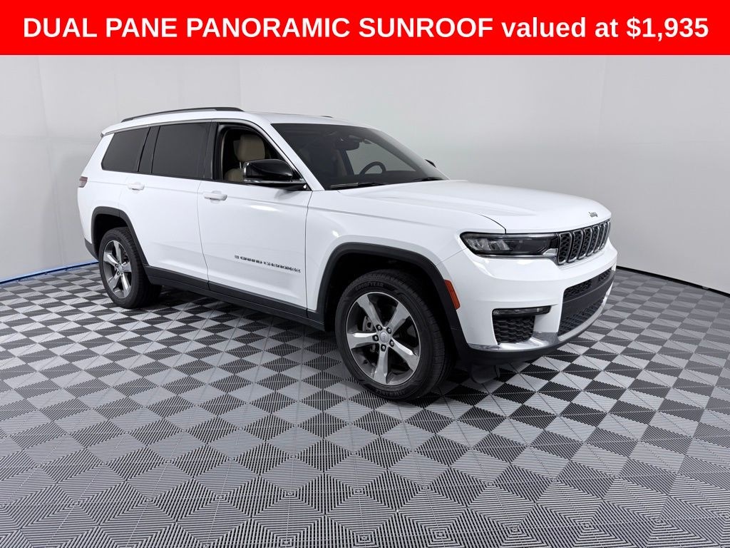 10.1" Touchscreen Display, 3.45 Rear Axle Ratio, 3rd row seats: split-bench, 4-Wheel Disc Brakes, 4G LTE Wi-Fi Hot Spot, 506 Watt Amplifier, 6 Speakers, 9 Amplified Speakers w/Subwoofer, ABS brakes, Active Noise Control System, Air Conditioning, All Radio Equipped Vehicles, Alloy wheels, AM/FM radio: SiriusXM with 360L, Anti-whiplash front head restraints, Apple CarPlay, Audio memory, Auto High-beam Headlights, Automatic temperature control, Brake assist, Bumpers: body-color, Capri Leather Seats, Compass, Connected Travel & Traffic Services, Connectivity - US/Canada, Delay-off headlights, Disassociated Touchscreen Display, Driver door bin, Driver vanity mirror, Dual front impact airbags, Dual front side impact airbags, Dual-Pane Panoramic Sunroof, Electronic Stability Control, Emergency communication system, For Details, Visit DriveUconnect.com, For More Info, Call 800-643-2112, Four wheel independent suspension, Front anti-roll bar, Front Bucket Seats, Front Center Armrest w/Storage, Front dual zone A/C, Front fog lights, Front reading lights, Fully automatic headlights, Garage door transmitter, Global Telematics Box Module (TBM), Google Android Auto, GPS Antenna Input, GPS Navigation, HD Radio, Heated door mirrors, Heated front seats, Heated rear seats, Heated steering wheel, Illuminated entry, Integrated Center Stack Radio, Integrated Voice Command w/Bluetooth, Interior Rear Facing Camera, Knee airbag, Leather steering wheel, Low tire pressure warning, Manual Fold Seatbacks, Memory seat, Normal Duty Suspension, Occupant sensing airbag, Outside temperature display, Overhead airbag, Overhead console, Panic alarm, ParkView Rear Back-Up Camera, Passenger door bin, Passenger vanity mirror, Power door mirrors, Power driver seat, Power Liftgate, Power passenger seat, Power steering, Power windows, Quick Order Package 22E, Radio data system, Radio: Uconnect 5 Nav w/10.1" Display, Radio: Uconnect 5 w/8.4" Display, Rear air conditioning, Rear anti-roll bar, Rear reading lights, Rear window defroster, Rear window wiper, Reclining 3rd row seat, Remote keyless entry, Security system, SiriusXM Radio Service, SiriusXM Satellite Radio, SiriusXM w/360L, Speed control, Speed-Sensitive Wipers, Split folding rear seat, Spoiler, Steering wheel mounted audio controls, Tachometer, Telescoping steering wheel, Tilt steering wheel, Traction control, Trip computer, Turn signal indicator mirrors, USB Host Flip, Variably intermittent wipers, Voltmeter, Wheels: 18" x 8.0" Fully Painted Aluminum 2, Wheels: 20" x 8.5" Polished/Painted Aluminum. 19/26 City/Highway MPG 19/26 City/Highway MPG Recent Arrival!