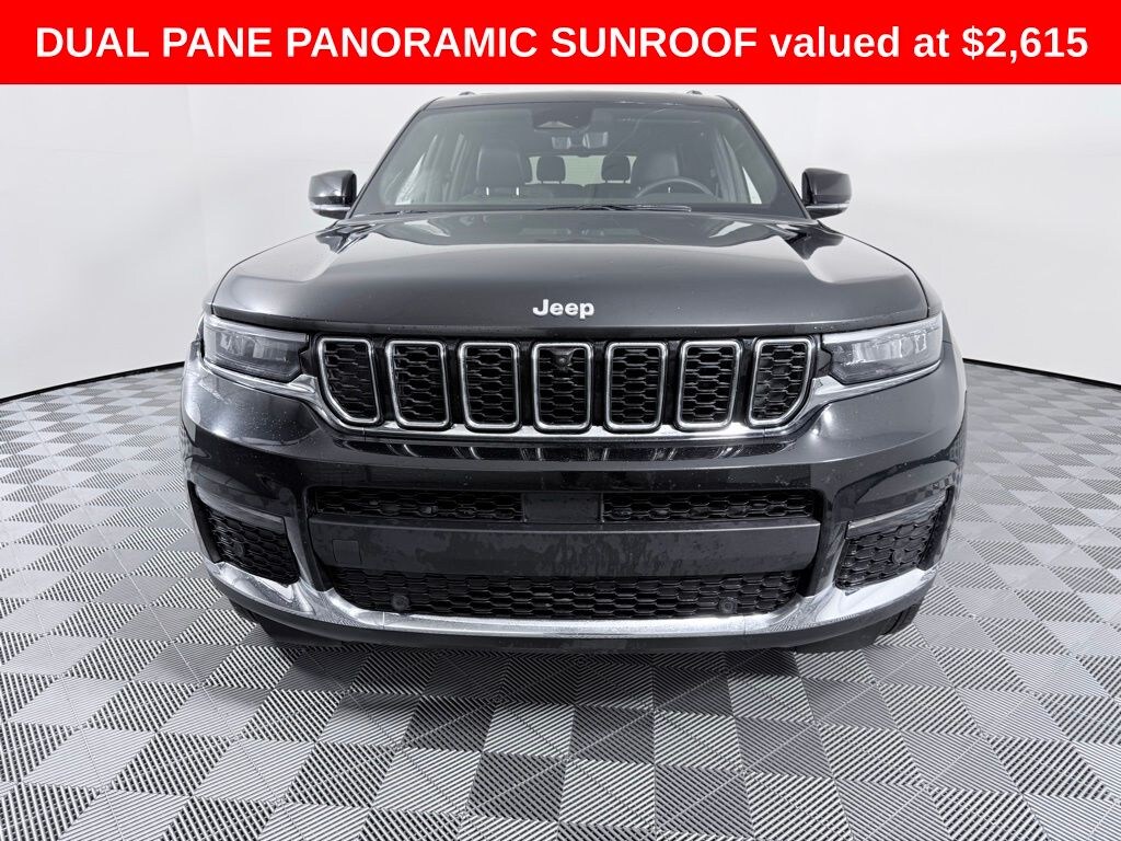 2nd Row Manual Window Shades, 3.45 Rear Axle Ratio, 3rd row seats: split-bench, 4-Wheel Disc Brakes, 6 Speakers, ABS brakes, Active Noise Control System, Air Conditioning, Alloy wheels, AM/FM radio: SiriusXM with 360L, Anti-whiplash front head restraints, Audio memory, Auto High-beam Headlights, Auto-Dimming Exterior Driver Mirror, Automatic temperature control, Brake assist, Bumpers: body-color, Capri Leatherette Seats, Capri Leatherette w/Axis II Seats, Compass, Delay-off headlights, Driver door bin, Driver vanity mirror, Dual front impact airbags, Dual front side impact airbags, Dual-Pane Panoramic Sunroof, Electronic Stability Control, Emergency communication system, Four wheel independent suspension, Front anti-roll bar, Front Bucket Seats, Front Center Armrest w/Storage, Front dual zone A/C, Front fog lights, Front License Plate Bracket, Front reading lights, Fully automatic headlights, Garage door transmitter, Heated door mirrors, Heated front seats, Heated rear seats, Heated steering wheel, Illuminated entry, Integrated Off-Road Camera, Interior Rear Facing Camera, Intersection Collision Assist System, Knee airbag, Low tire pressure warning, Luxury Tech Group II, Manual Fold Seatbacks, Memory seat, Memory Steering Column, Navigation System, Normal Duty Suspension, Occupant sensing airbag, Outside temperature display, Overhead airbag, Overhead console, Panic alarm, ParkSense Front/Rear Park Assist w/Stop, ParkView Rear Back-Up Camera, Passenger door bin, Passenger vanity mirror, Passive Entry - Front/Rear Doors, Liftgate, Power door mirrors, Power driver seat, Power Liftgate, Power passenger seat, Power steering, Power Tilt/Telescope Steering Column, Power windows, Quick Order Package 23E, Radio data system, Radio: Uconnect 5 Nav w/10.1" Display, Rain Sensitive Windshield Wipers, Rear air conditioning, Rear anti-roll bar, Rear Back Up Camera Washer, Rear reading lights, Rear window defroster, Rear window wiper, Rearview Autodim Digital Display Mirror, Reclining 3rd row seat, Remote keyless entry, Security system, Speed control, Speed-Sensitive Wipers, Split folding rear seat, Spoiler, Steering wheel mounted audio controls, Surround View Camera System, Tachometer, Telescoping steering wheel, Tilt steering wheel, Traction control, Trip computer, Turn signal indicator mirrors, Variably intermittent wipers, Ventilated Front Seats, Voltmeter, Wheels: 18" x 8.0" Polished/Painted Aluminum, Wireless Charging Pad. 18/25 City/Highway MPG Recent Arrival!