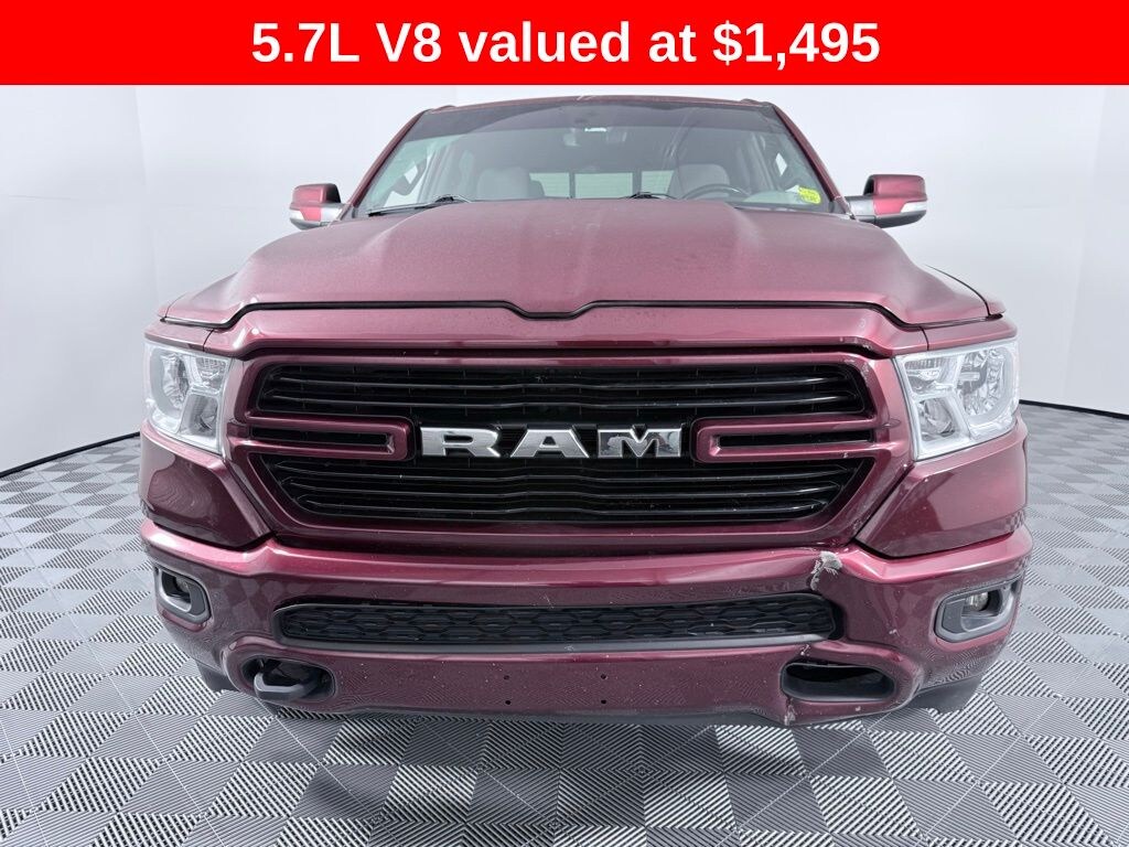 1-Year SiriusXM Radio Service, 1-Yr SiriusXM Guardian Trial, 2nd Row In Floor Storage Bins, 3 Rear Seat Head Restraints, 4 Way Front Headrests, 4-Wheel Disc Brakes, 48V Belt Starter Generator, 4G LTE Wi-Fi Hot Spot, 5-Year SiriusXM Traffic Service, 5-Year SiriusXM Travel Link Service, 6 Speakers, 8.4" Touchscreen Display, ABS brakes, Air Conditioning, Air Conditioning ATC w/Dual Zone Control, Alloy wheels, AM/FM radio, Anti-Spin Differential Rear Axle, Apple CarPlay, Auto-Dimming Rear-View Mirror, Big Horn Badge, Big Horn IP Badge, Big Horn Level 1 Equipment Group, Black Interior Accents, Black Premium Power Mirrors, Body Color Door Handles, Body Color Front Bumper, Body Color Premium Power Mirrors, Body Color Rear Bumper w/Step Pads, Brake assist, Bucket Seats, Bumpers: chrome, Class IV Receiver Hitch, Cloth Bench Seat, Cluster 3.5" TFT Color Display, Compass, Delay-off headlights, Deluxe Cloth Bucket Seats, Disassociated Touchscreen Display, Driver door bin, Dual front impact airbags, Dual front side impact airbags, Electronic Stability Control, Foam Bottle Insert (Door Trim Panel), For Details, Visit DriveUconnect.com, Front anti-roll bar, Front Center Armrest w/Storage, Front fog lights, Front reading lights, Front Seat Back Map Pockets, Front wheel independent suspension, Full Length Floor Console, Fully automatic headlights, Glove Box Lamp, Google Android Auto, GPS Antenna Input, GPS Navigation, Grille Surround 1 Body Color Texture 2 Black, HD Radio, Heated door mirrors, Illuminated entry, Integrated Center Stack Radio, Leather steering wheel, Low tire pressure warning, Manual Adjust 4-Way Front Passenger Seat, No Satellite Coverage w/HI/AK/PR/VI/GU, Occupant sensing airbag, Outside temperature display, Overhead airbag, Overhead console, Panic alarm, ParkView Rear Back-Up Camera, Passenger door bin, Passenger vanity mirror, Power 4-Way Driver Lumbar Adjust, Power 8-Way Driver Seat, Power Adjustable Pedals, Power door mirrors, Power steering, Power windows, Protection Group, Quick Order Package 25Z Big Horn, Radio data system, Radio: Uconnect 3 w/5" Display, Radio: Uconnect 4 w/8.4" Display, Radio: Uconnect 4C Nav w/8.4" Display, Rear 60/40 Folding Seat, Rear anti-roll bar, Rear Dome w/On/Off Switch Lamp, Rear Power Sliding Window, Rear seat center armrest, Rear step bumper, Rear Wheelhouse Liners, Rear Window Defroster, Remote keyless entry, Remote Start System, SiriusXM Satellite Radio, SiriusXM Traffic Plus, SiriusXM Travel Link, Speed control, Split folding rear seat, Sport Appearance Package, Sport Decal, Steering wheel mounted audio controls, Sun Visors w/Illuminated Vanity Mirrors, Tachometer, Telescoping steering wheel, Tilt steering wheel, Tow Hooks, Traction control, Trip computer, Universal Garage Door Opener, Variably intermittent wipers, Voltmeter, Wheels: 18" x 8" Cast-Aluminum Painted, Wheels: 20" x 9" Aluminum Chrome Clad (WRK). 15/21 City/Highway MPG Recent Arrival!