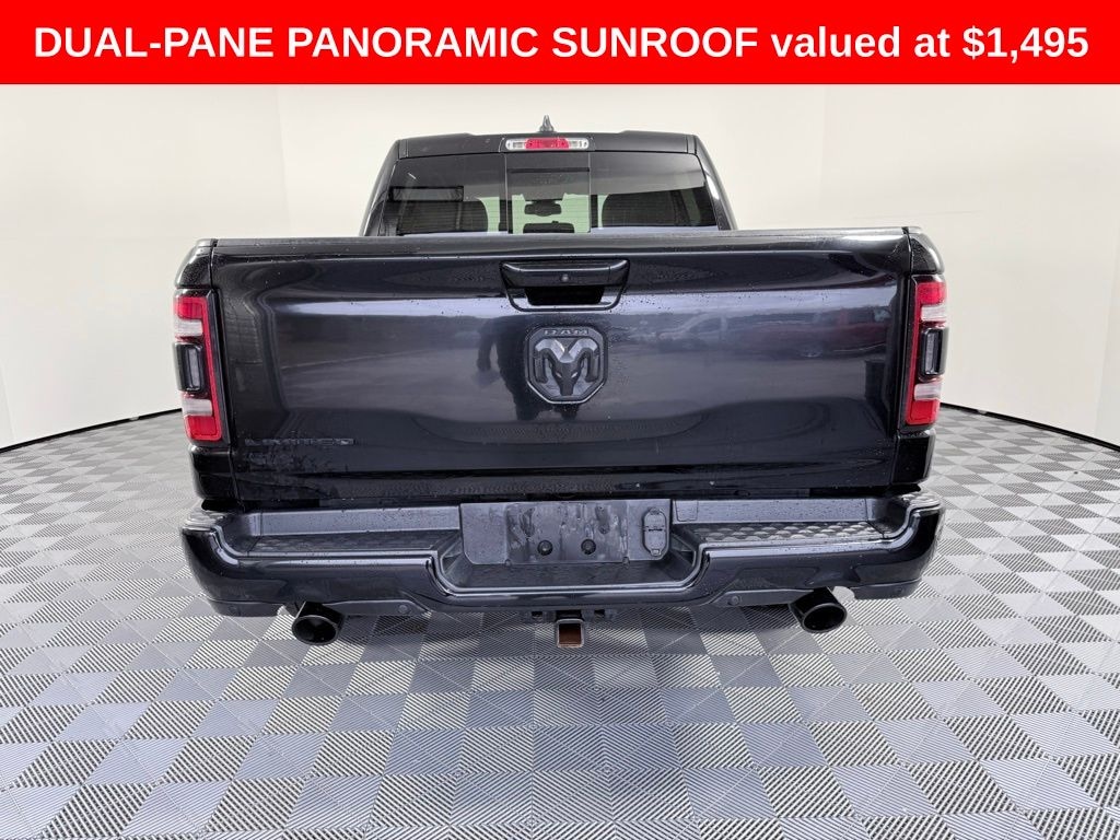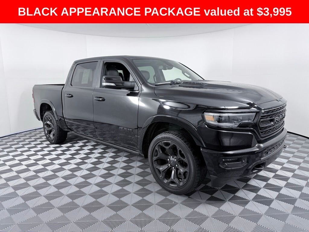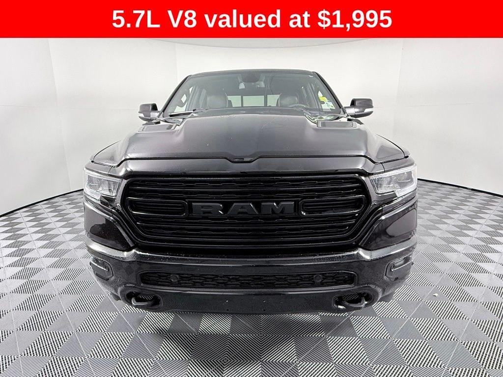 10 Speakers, 3.21 Rear Axle Ratio, 4-Wheel Disc Brakes, 48V Belt Starter Generator, ABS brakes, Adjustable pedals, Air Conditioning, Alloy wheels, AM/FM radio: SiriusXM with 360L, Anti-Spin Differential Rear Axle, Apple CarPlay/Android Auto, Audio memory, Auto High-beam Headlights, Auto-dimming door mirrors, Auto-dimming Rear-View mirror, Auto-leveling suspension, Automatic temperature control, Black Appearance Package, Black Day Light Opening Moldings, Black Exterior Truck Badging, Black Grille Surround Texture 7 Chrome, Black Headlamp Bezels, Body Color Door Handles, Body Color Exterior Mirrors, Body Color Front Bumper, Body Color Premium Power Mirrors, Body Color Rear Bumper w/Step Pads, Bodyside moldings, Brake assist, Bumpers: chrome, Compass, Delay-off headlights, Dome Dual LED Reading Lamp, Driver door bin, Driver vanity mirror, Dual Exhaust w/Black Tips, Dual front impact airbags, Dual front side impact airbags, Dual-Pane Panoramic Sunroof, Electronic Stability Control, Emergency communication system: SiriusXM Guardian, Front anti-roll bar, Front Bucket Seats, Front Center Armrest w/Storage, Front dual zone A/C, Front fog lights, Front reading lights, Front wheel independent suspension, Fully automatic headlights, Garage door transmitter, Genuine wood console insert, Genuine wood dashboard insert, Genuine wood door panel insert, harman/kardon 19 Speaker Premium Sound, Heated door mirrors, Heated front seats, Heated rear seats, Heated steering wheel, Illuminated entry, Leather steering wheel, LED Dome/Reading Lamp, Low tire pressure warning, Memory seat, Navigation System, Occupant sensing airbag, Outside temperature display, Overhead airbag, Overhead console, Panic alarm, ParkView Rear Back-Up Camera, Passenger door bin, Passenger vanity mirror, Pedal memory, Power door mirrors, Power driver seat, Power passenger seat, Power steering, Power windows, Premium Leather Trimmed Bucket Seats, Quick Order Package 27M Limited, Radio data system, Radio: Uconnect 12 w/Navigation, Rain sensing wipers, RAM Grille Badge - Black, Rear anti-roll bar, Rear seat center armrest, Rear step bumper, Rear window defroster, Remote keyless entry, Security system, Speed control, Split folding rear seat, Sport Performance Hood, Steering wheel mounted audio controls, Tachometer, Telescoping steering wheel, Tilt steering wheel, Tow Hooks, Traction control, Tri-Fold Tonneau Cover, Trip computer, Turn signal indicator mirrors, Variably intermittent wipers, Ventilated front seats, Voltmeter, Wheels: 20" x 9" Polished w/Inserts, Wheels: 22" x 9" Black Aluminum. 15/22 City/Highway MPG Recent Arrival!