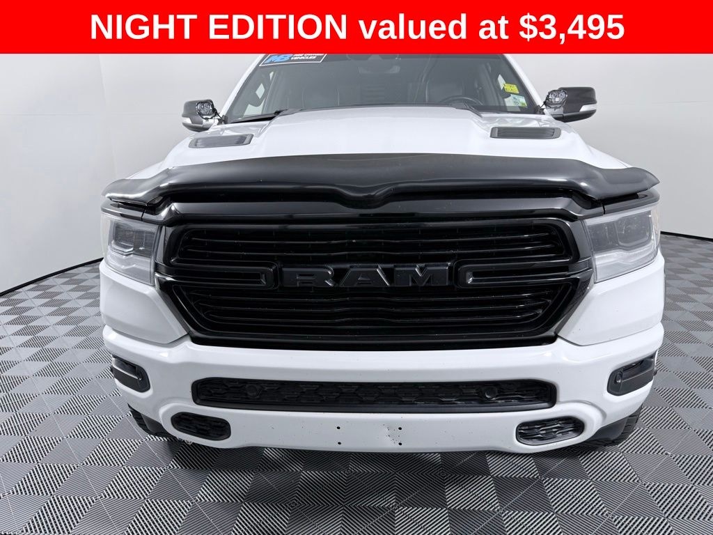 #1 Seat Foam Cushion, 1-Yr SiriusXM Guardian Trial, 10 Speakers, 3 Rear Seat Head Restraints, 3.21 Rear Axle Ratio, 4 Way Front Headrests, 4-Wheel Disc Brakes, 48V Belt Starter Generator, 4G LTE Wi-Fi Hot Spot, 5-Year SiriusXM Traffic Service, 5-Year SiriusXM Travel Link Service, 8.4" Touchscreen Display, ABS brakes, Adjustable pedals, Air Conditioning, Alloy wheels, AM/FM radio: SiriusXM, Anti-Spin Differential Rear Axle, Apple CarPlay, Apple CarPlay/Android Auto, Audio memory, Auto-dimming door mirrors, Auto-dimming Rear-View mirror, Automatic temperature control, Brake assist, Bumpers: chrome, Chrome Exterior Mirrors, Compass, Delay-off headlights, Disassociated Touchscreen Display, Driver door bin, Driver Seat Memory, Driver vanity mirror, Dual front impact airbags, Dual front side impact airbags, Electronic Stability Control, For Details, Visit DriveUconnect.com, For More Info, Call 800-643-2112, Front anti-roll bar, Front Center Armrest w/Storage, Front dual zone A/C, Front fog lights, Front reading lights, Front Seat Back Map Pockets, Front wheel independent suspension, Fully automatic headlights, Garage door transmitter, Google Android Auto, GPS Antenna Input, GPS Navigation, HD Radio, Heated door mirrors, Heated Front Seats, Heated front seats, Heated Steering Wheel, Heated steering wheel, Illuminated entry, Integrated Center Stack Radio, Integrated Voice Command w/Bluetooth, Laramie Level 2 Equipment Group (DISC), Leather steering wheel, Leather Trim 40/20/40 Bench Seat, Leather Trimmed Bucket Seats, Low tire pressure warning, Memory seat, Night Edition, Occupant sensing airbag, Outside temperature display, Overhead airbag, Overhead console, Panic alarm, ParkSense Front/Rear Park Assist w/Stop, ParkView Rear Back-Up Camera, Passenger door bin, Passenger vanity mirror, Pedal memory, Power 4-Way Driver Lumbar Adjust, Power 4-Way Passenger Lumbar Adjust, Power 8-Way Driver & Passenger Seats, Power door mirrors, Power driver seat, Power passenger seat, Power steering, Power windows, Quick Order Package 27H Laramie, Radio data system, Radio: Uconnect 4 w/8.4" Display, Radio: Uconnect 4C Nav w/8.4" Display, Rear anti-roll bar, Rear seat center armrest, Rear step bumper, Rear Underseat Compartment Storage, Rear window defroster, Remote keyless entry, Security system, SiriusXM Radio Service, SiriusXM Satellite Radio, SiriusXM Traffic Plus, SiriusXM Travel Link, Speed control, Split folding rear seat, Steering wheel mounted audio controls, Tachometer, Telescoping steering wheel, Tilt steering wheel, Traction control, Trip computer, Turn signal indicator mirrors, USB Host Flip, Variably intermittent wipers, Ventilated Front Seats, Ventilated front seats, Voltmeter, Wheels: 18" x 8" Aluminum Base Painted, Wheels: 22" x 9" Forged Aluminum. 15/22 City/Highway MPG Recent Arrival!