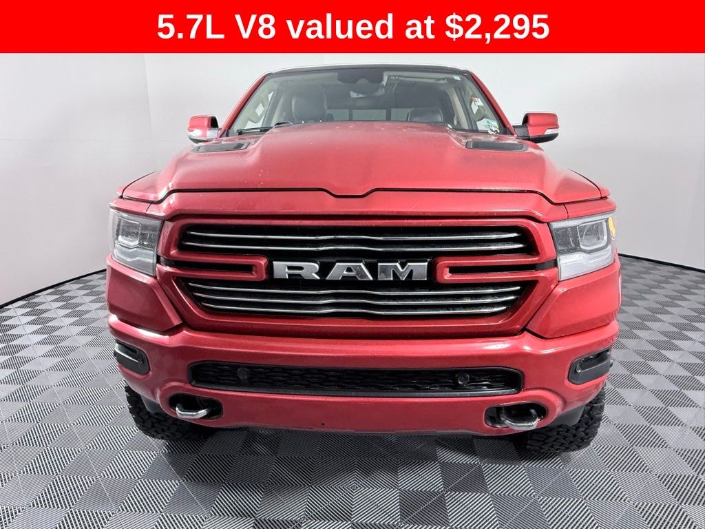 #1 Seat Foam Cushion, 1-Yr SiriusXM Guardian Trial, 10 Speakers, 12" Touchscreen Display, 3 Rear Seat Head Restraints, 3.21 Rear Axle Ratio, 4 Way Front Headrests, 4-Wheel Disc Brakes, 48V Belt Starter Generator, 4G LTE Wi-Fi Hot Spot, 5-Year SiriusXM Traffic Service, 5-Year SiriusXM Travel Link Service, 8.4" Touchscreen Display, ABS brakes, Adjustable pedals, Air Conditioning, Alloy wheels, AM/FM radio: SiriusXM, Anti-Spin Differential Rear Axle, Apple CarPlay, Apple CarPlay/Android Auto, Audio memory, Auto-dimming door mirrors, Auto-dimming Rear-View mirror, Automatic temperature control, Brake assist, Bumpers: chrome, Chrome Exterior Mirrors, Compass, Delay-off headlights, Disassociated Touchscreen Display, Dome Dual LED Reading Lamp, Driver door bin, Driver Seat Memory, Driver vanity mirror, Dual front impact airbags, Dual front side impact airbags, Dual-Pane Panoramic Sunroof, Electronic Stability Control, For Details, Visit DriveUconnect.com, For More Info, Call 800-643-2112, Front anti-roll bar, Front Center Armrest w/Storage, Front dual zone A/C, Front fog lights, Front reading lights, Front Seat Back Map Pockets, Front wheel independent suspension, Fully automatic headlights, Garage door transmitter, Google Android Auto, GPS Antenna Input, GPS Navigation, HD Radio, Heated door mirrors, Heated Front Seats, Heated front seats, Heated Steering Wheel, Heated steering wheel, Illuminated entry, Integrated Center Stack Radio, Integrated Voice Command w/Bluetooth, Laramie Level 1 Equipment Group (DISC), Laramie Southwest Edition, Leather steering wheel, Leather Trim 40/20/40 Bench Seat, LED Dome/Reading Lamp, Low tire pressure warning, Memory seat, Occupant sensing airbag, Outside temperature display, Overhead airbag, Overhead console, Panic alarm, ParkSense Front/Rear Park Assist w/Stop, ParkView Rear Back-Up Camera, Passenger door bin, Passenger vanity mirror, Pedal memory, Power 4-Way Driver Lumbar Adjust, Power 4-Way Passenger Lumbar Adjust, Power 8-Way Driver & Passenger Seats, Power door mirrors, Power driver seat, Power passenger seat, Power Running Boards, Power steering, Power windows, Quick Order Package 27H Laramie, Radio data system, Radio: Uconnect 12 w/Navigation, Radio: Uconnect 4 w/8.4" Display, Rear anti-roll bar, Rear seat center armrest, Rear step bumper, Rear window defroster, Remote keyless entry, Security system, SiriusXM Radio Service, SiriusXM Satellite Radio, SiriusXM Traffic Plus, SiriusXM Travel Link, SiriusXM w/360L, Speed control, Split folding rear seat, Steering wheel mounted audio controls, Tachometer, Telescoping steering wheel, Tilt steering wheel, Traction control, Trailer Brake Control, Trip computer, Turn signal indicator mirrors, USB Host Flip, Variably intermittent wipers, Ventilated Front Seats, Ventilated front seats, Voltmeter, Wheels: 18" x 8" Aluminum Base Painted, Wheels: 20" x 9" Premium Painted w/Inserts. 15/22 City/Highway MPG Recent Arrival! Odometer is 12317 miles below market average!
