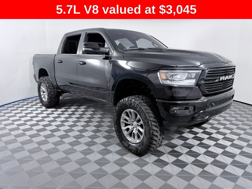 #1 Seat Foam Cushion, 10 Speakers, 12" Touchscreen Display, 2nd Row In Floor Storage Bins, 3 Rear Seat Head Restraints, 3.21 Rear Axle Ratio, 4 Way Front Headrests, 4-Wheel Disc Brakes, 48V Belt Starter Generator, 4G LTE Wi-Fi Hot Spot, ABS brakes, Adjustable pedals, Air Conditioning, Alloy wheels, AM/FM radio: SiriusXM with 360L, Anti-Spin Differential Rear Axle, Apple CarPlay, Apple CarPlay/Android Auto, Audio memory, Auto High Beam Headlamp Control, Auto-dimming door mirrors, Auto-Dimming Exterior Driver Mirror, Auto-dimming Rear-View mirror, Automatic temperature control, Black Interior Accents, Blind Spot & Cross Path Detection, Body Color Exterior Mirrors, Body Color Front Bumper, Body Color Premium Power Mirrors, Body Color Rear Bumper w/Step Pads, Brake assist, Bumpers: chrome, Chrome Exterior Mirrors, Compass, Connected Travel & Traffic Services, Connectivity - US/Canada, Convex Wide-Angle Exterior Mirror Insert, Delay-off headlights, Disassociated Touchscreen Display, Driver door bin, Driver Seat Memory, Driver vanity mirror, Dual front impact airbags, Dual front side impact airbags, Electric Shift-On-Demand Transfer Case, Electronic Stability Control, Exterior Mirrors Courtesy Lamps, Exterior Mirrors w/Heating Element, Exterior Mirrors w/Memory, Exterior Mirrors w/Supplemental Signals, Foam Bottle Insert (Door Trim Panel), For Details, Visit DriveUconnect.com, For More Info, Call 800-643-2112, Front anti-roll bar, Front Center Armrest w/Storage, Front Door Accent Lighting, Front dual zone A/C, Front fog lights, Front LED Fog Lamps, Front reading lights, Front Seat Back Map Pockets, Front wheel independent suspension, Fully automatic headlights, Garage door transmitter, Global Telematics Box Module (TBM), Google Android Auto, GPS Antenna Input, GPS Navigation, Grille Surround 3 Body Color Tex 2 Black, HD Radio, Heated door mirrors, Heated Front Seats, Heated front seats, Heated Steering Wheel, Heated steering wheel, Illuminated entry, Integrated Center Stack Radio, Integrated Voice Command w/Bluetooth, Laramie Level 1 Equipment Group, Leather steering wheel, Leather Trim 40/20/40 Bench Seat, LED Reflector Headlamps, Low tire pressure warning, Memory seat, Navigation System, Occupant sensing airbag, Outside temperature display, Overhead airbag, Overhead console, Panic alarm, ParkSense Front/Rear Park Assist w/Stop (DISC), ParkView Rear Back-Up Camera, Passenger door bin, Passenger vanity mirror, Pedal memory, Power 2-Way Driver Lumbar Adjust, Power 2-Way Passenger Lumbar Adjust, Power 8-Way Driver & Passenger Seats, Power door mirrors, Power driver seat, Power passenger seat, Power steering, Power windows, Power-Folding Mirrors, Quick Order Package 27H Laramie, Radio data system, Radio: Uconnect 5 Nav w/12.0" Display, Radio: Uconnect 5 Nav w/8.4" Display, Rain Sensitive Windshield Wipers, RAM Grille Badge - Chrome, Rear 60/40 Folding Seat, Rear anti-roll bar, Rear Door Accent Lighting, Rear Power Sliding Window, Rear seat center armrest, Rear step bumper, Rear Wheelhouse Liners, Rear Window Defroster, Remote keyless entry, Remote Tailgate Release, Security system, SiriusXM Radio Service, SiriusXM w/360L, Speed control, Split folding rear seat, Sport Appearance Package, Sport Decal, Sport Performance Hood, Steering wheel mounted audio controls, Tachometer, Telescoping steering wheel, Tilt steering wheel, Traction control, Trip computer, Turn signal indicator mirrors, USB Host Flip, Variably intermittent wipers, Ventilated Front Seats, Ventilated front seats, Voltmeter, Wheels: 18" x 8" Aluminum Base Painted, Wheels: 20" x 9" Premium Painted w/Inserts. 17/22 City/Highway MPG Recent