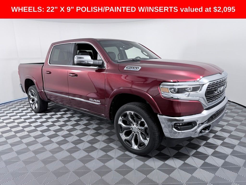 10 Speakers, 3.21 Rear Axle Ratio, 4 Way Front Headrests, 4-Wheel Disc Brakes, 48V Belt Starter Generator, ABS brakes, Active Noise Control System, Adjustable pedals, Air Conditioning, Alloy wheels, AM/FM radio: SiriusXM with 360L, Apple CarPlay/Android Auto, Audio memory, Auto High-beam Headlights, Auto-dimming door mirrors, Auto-Dimming Exterior Driver Mirror, Auto-dimming Rear-View mirror, Auto-leveling suspension, Automatic temperature control, Bodyside moldings, Brake assist, Bucket Seats, Bumpers: chrome, Chrome Exterior Mirrors, Compass, Convex Wide-Angle Exterior Mirror Insert, Delay-off headlights, Driver door bin, Driver Seat Memory, Driver vanity mirror, Dual front impact airbags, Dual front side impact airbags, Dual Rear Exhaust w/Bright Tips, Electronic Stability Control, Exterior Mirrors Courtesy Lamps, Exterior Mirrors w/Heating Element, Exterior Mirrors w/Memory, Exterior Mirrors w/Supplemental Signals, Exterior Parking Camera Rear, Front anti-roll bar, Front Bucket Seats, Front Center Armrest w/Storage, Front dual zone A/C, Front fog lights, Front reading lights, Front Seat Back Map Pockets, Front wheel independent suspension, Full Length Premium Floor Console, Fully automatic headlights, Garage door transmitter, Genuine wood console insert, Genuine wood dashboard insert, Genuine wood door panel insert, Heated door mirrors, Heated Front Seats, Heated front seats, Heated rear seats, Heated Second Row Seats, Heated Steering Wheel, Heated steering wheel, Heavy-Duty Engine Cooling, HEMI Badge, Illuminated entry, Leather steering wheel, Low tire pressure warning, Memory seat, Navigation System, Occupant sensing airbag, Outside temperature display, Overhead airbag, Overhead console, Panic alarm, Passenger door bin, Passenger vanity mirror, Passive Tuned Mass Damper, Pedal memory, Power 4-Way Driver Lumbar Adjust, Power 4-Way Passenger Lumbar Adjust, Power 8-Way Driver & Passenger Seats, Power door mirrors, Power driver seat, Power passenger seat, Power steering, Power windows, Power-Folding Mirrors, Premium Leather Trimmed Bucket Seats, Quick Order Package 27M Limited, Radio data system, Radio: Uconnect 5 Nav w/12.0" Display, Rain sensing wipers, Rear 60/40 Folding Split Recline Seat, Rear anti-roll bar, Rear seat center armrest, Rear step bumper, Rear window defroster, Remote keyless entry, Security system, Speed control, Split folding rear seat, Steering wheel mounted audio controls, Tachometer, Telescoping steering wheel, Tilt steering wheel, Traction control, Trip computer, Turn signal indicator mirrors, Variably intermittent wipers, Ventilated Front Seats, Ventilated front seats, Ventilated Rear Seats, Ventilated rear seats, Voltmeter, Wheels: 20" x 9" Aluminum Painted/Polished, Wheels: 22" x 9" Polish/Painted w/Inserts. 15/22 City/Highway MPG