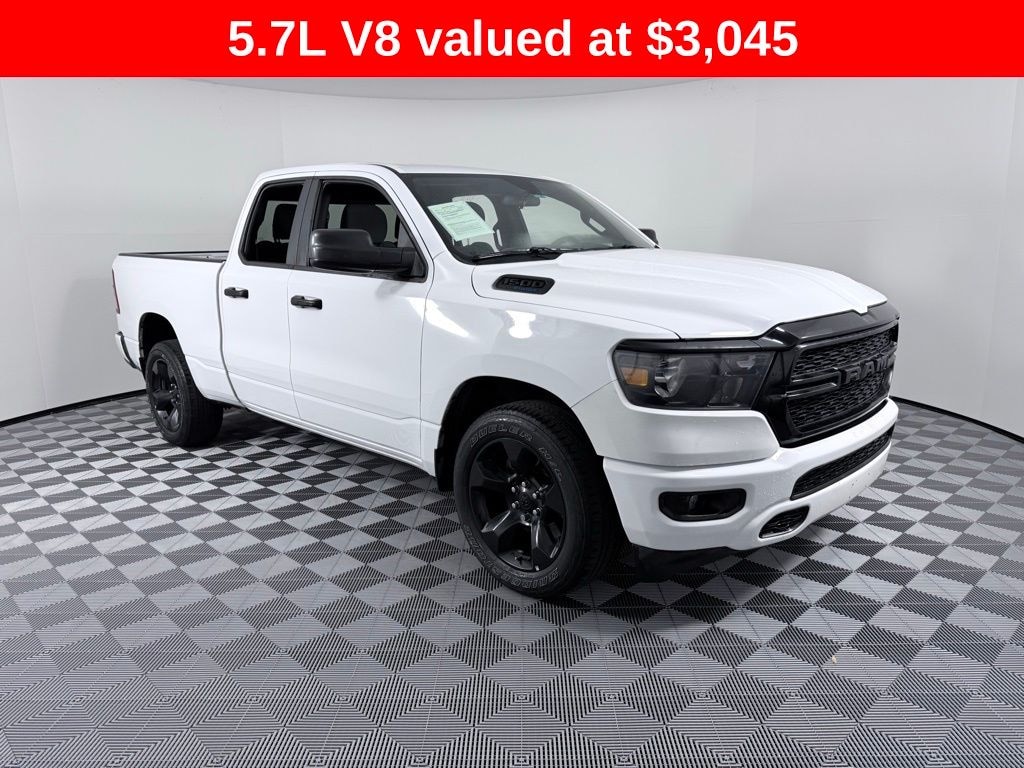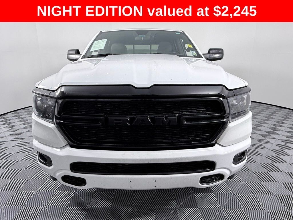 3 Rear Seat Head Restraints, 4 Way Front Headrests, 4-Wheel Disc Brakes, 40/20/40 Split Bench Seat, 48V Belt Starter Generator, 6 Speakers, ABS brakes, Air Conditioning, AM/FM radio, Anti-Spin Differential Rear Axle, Black Exterior Mirrors, Black Exterior Truck Badging, Black Interior Accents, Body Color Front Bumper, Body Color Rear Bumper w/Step Pads, Brake assist, Carpet Floor Covering, Class IV Receiver Hitch, Cloth 40/20/40 Bench Seat, Compass, Delay-off headlights, Driver door bin, Dual front impact airbags, Dual front side impact airbags, Electronic Stability Control, Emergency communication system: SiriusXM Guardian, For Details, Visit DriveUconnect.com, Front & Rear Floor Mats, Front anti-roll bar, Front Center Armrest, Front Center Seat Cushion Storage, Front Fog Lamps, Front reading lights, Front wheel independent suspension, Fully automatic headlights, GPS Antenna Input, Grille Black Surround Black Mesh, Heated door mirrors, Heavy Duty Vinyl 40/20/40 Split Bench Seat, Illuminated entry, Low tire pressure warning, Manual Adjust 4-Way Driver Seat, Manual Adjust 4-Way Front Passenger Seat, Night Edition, Occupant sensing airbag, Outside temperature display, Overhead airbag, Overhead console, Panic alarm, ParkView Rear Back-Up Camera, Passenger door bin, Passenger vanity mirror, Power door mirrors, Power steering, Power windows, Quick Order Package 27A Tradesman, Radio data system, Radio: Uconnect 3 w/5" Display, RAM Grille Badge - Black, Rear anti-roll bar, Rear Folding Seat, Rear Power Sliding Window, Rear step bumper, Remote keyless entry, SiriusXM Satellite Radio, Speed control, Tachometer, Telescoping steering wheel, Tilt steering wheel, Traction control, Tradesman Level 1 Equipment Group, Variably intermittent wipers, Voltmeter, Wheels: 18" x 7.5" Steel Painted, Wheels: 20" x 9" Cast Aluminum Black. 18/23 City/Highway MPG Recent Arrival!