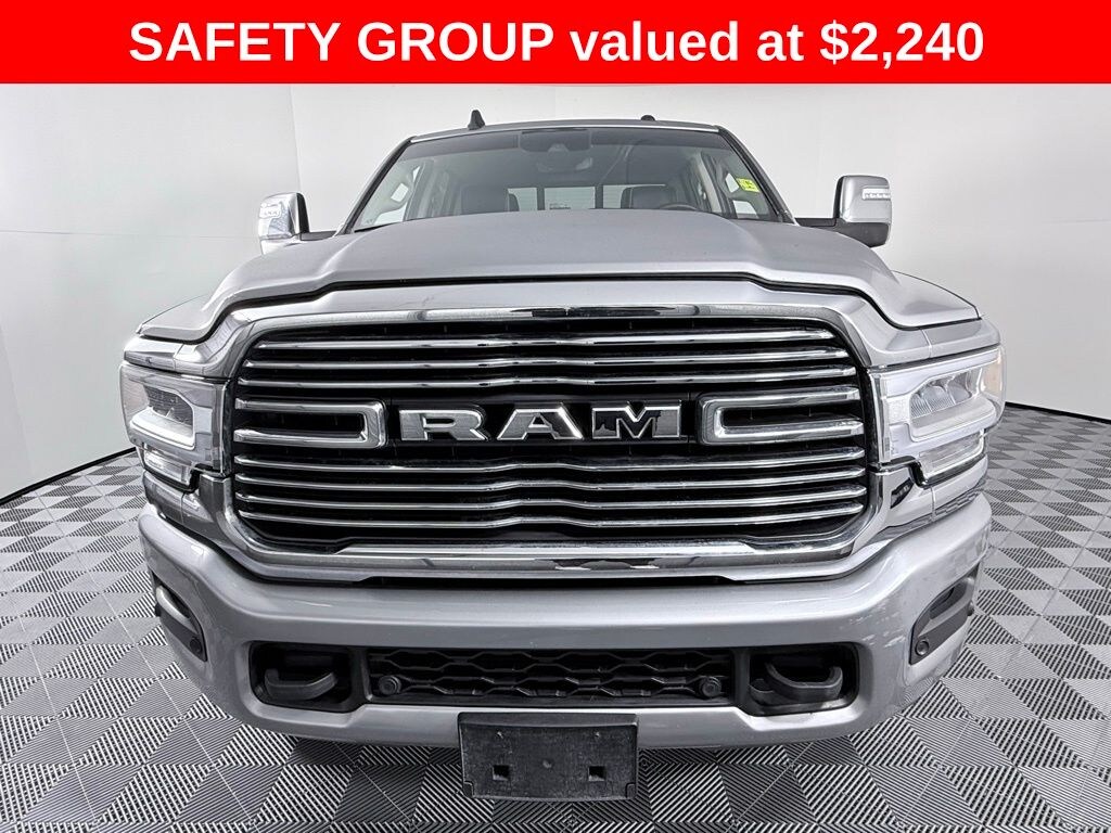 10 Speakers, 115V Auxiliary Rear Power Outlet, 12" Touchscreen Display, 2 Way Rear Headrest Seat, 220 Amp Alternator, 2nd Row In Floor Storage Bins, 3.73 Axle Ratio, 4 Way Front Headrests, 4-Wheel Disc Brakes, 4G LTE Wi-Fi Hot Spot, ABS brakes, Active Noise Control System, Adaptive Cruise Control w/Stop, Adaptive Steering System, Air Conditioning, Alexa Built-In, Alloy wheels, AM/FM radio: SiriusXM with 360L, Apple CarPlay, Apple CarPlay/Android Auto, Auto Adjust In Reverse Exterior Mirrors, Auto Dim Exterior Mirror, Auto High Beam Headlamp Control, Auto Power-Folding Mirrors, Auto-Dimming Exterior Passenger Mirror, Automatic temperature control, Blind Spot & Cross Path Detection, Brake assist, Bumpers: body-color, Center Hub, Chrome Exterior Mirrors, Compass, Connected Travel & Traffic Services, Connectivity - US/Canada, Delay-off headlights, Disassociated Touchscreen Display, Driver door bin, Driver vanity mirror, Dual front impact airbags, Dual front side impact airbags, Electronic Stability Control, Electronically Controlled Throttle, Exterior Mirrors Courtesy Lamps, Exterior Mirrors w/Heating Element, Exterior Mirrors w/Memory, Exterior Mirrors w/Supplemental Signals, Foam Bottle Insert (Door Trim Panel), For Details, Visit DriveUconnect.com, For More Info, Call 800-643-2112, Forward & Reverse Utility Lights, Front anti-roll bar, Front Center Armrest w/Storage, Front dual zone A/C, Front LED Fog Lamps, Front License Plate Bracket, Front reading lights, Front Seat Back Map Pockets, Full Speed Forward Collision Warning Plus, Fully automatic headlights, Garage door transmitter, Global Telematics Box Module (TBM), Google Android Auto, GPS Antenna Input, GPS Navigation, HD Radio, Heated door mirrors, Heated Front Seats, Heated front seats, Heated Steering Wheel, Heated steering wheel, Illuminated entry, Integrated Voice Command w/Bluetooth, Lane Keep Assist, Laramie Level 1 Equipment Group, Leather steering wheel, Leather Trim 40/20/40 Bench Seat, LED Reflector Headlamps, LED Tail Lamps, Low tire pressure warning, Manufacturer's Statement of Origin, Mirror Running Lights, Navigation System, Occupant sensing airbag, Off-Road Information Pages, Outside temperature display, Overhead airbag, Overhead console, Panic alarm, ParkSense Front/Rear Park Assist System, ParkView Rear Back-Up Camera, Passenger door bin, Passenger vanity mirror, Power 2-Way Driver Lumbar Adjust, Power 2-Way Passenger Lumbar Adjust, Power Adjust 8-Way Driver Seat, Power Adjust 8-Way Front Passenger Seat, Power Adjust Mirrors, Power Adjustable Convex Aux Mirrors, Power Adjustable Pedals w/Memory, Power door mirrors, Power driver seat, Power Heated Fold Telescopic Mirrors w/Memory, Power passenger seat, Power steering, Power Telescoping Mirrors, Power windows, Quick Order Package 2HH Laramie, Radio data system, Radio: Uconnect 5 Nav w/12.0" Display, Rain Sensitive Windshield Wipers, Rear 60/40 Folding Seat, Rear anti-roll bar, Rear Power Sliding Window, Rear reading lights, Rear seat center armrest, Rear step bumper, Rear Window Defroster, Rear window defroster, Remote keyless entry, Remote Tailgate Release, Safety Group, Security system, Selectable Tire Fill Alert, SiriusXM Radio Service, SiriusXM w/360L, Speed control, Split folding rear seat, Steering wheel mounted audio controls, Tachometer, Tilt steering wheel, Tip Start, Tow Hooks, Traction control, Trailer Tow Pages, Trip computer, Turn signal indicator mirrors, Variably intermittent wipers, Voltmeter, Wheels: 18" x 8.0" Polished Aluminum. Odometer is 8160 miles below market average!