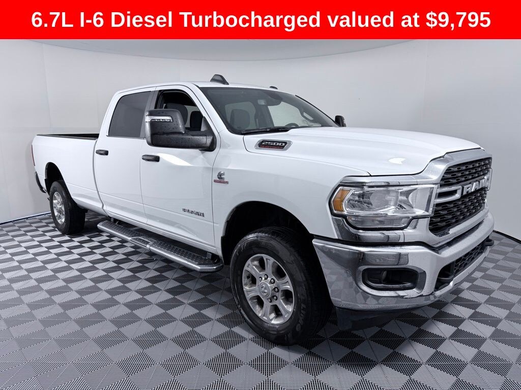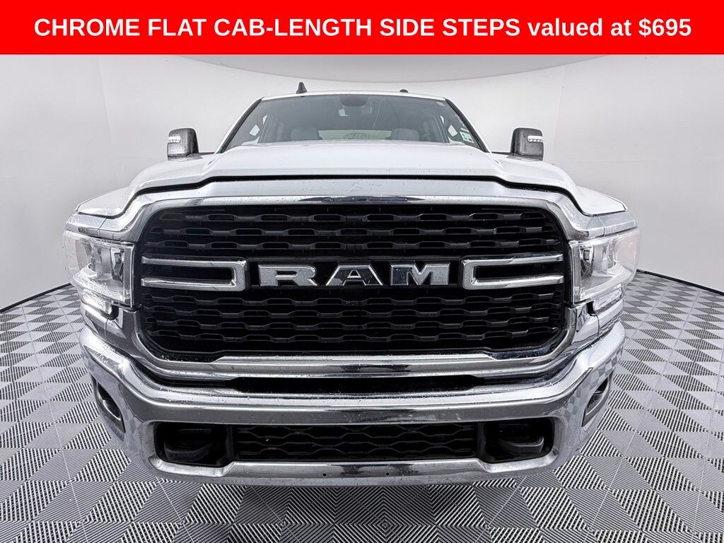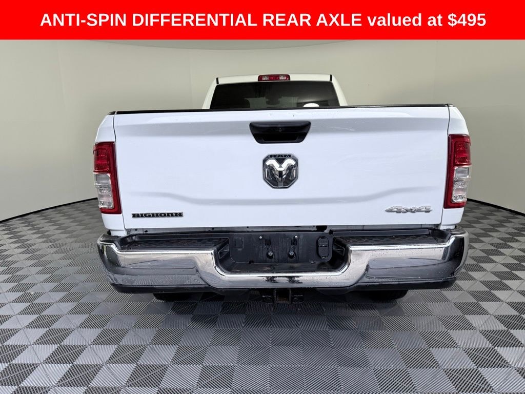 2 Way Rear Headrest Seat, 2nd Row In Floor Storage Bins, 3.73 Axle Ratio, 4 Way Front Headrests, 4-Wheel Disc Brakes, 40/20/40 Split Bench Seat, 4G LTE Wi-Fi Hot Spot, 6 Speakers, 8.4" Touchscreen Display, ABS brakes, Active Noise Control System, Air Conditioning, Anti-Spin Differential Rear Axle, Apple CarPlay, Auto Power-Folding Mirrors, Big Horn IP Badge, Black Exterior Mirrors, Bluetooth Handsfree Phone & Audio, Brake assist, Bumpers: chrome, Center Hub, Center Stack Storage Drawer, Chrome Flat Cab-Length Side Steps, Cloth 40/20/40 Bench Seat, Compass, Connectivity - US/Canada, Delay-off headlights, Driver door bin, Dual front impact airbags, Dual front side impact airbags, Dual Glove Boxes, Electronic Stability Control, Electronically Controlled Throttle, Emergency communication system: SiriusXM Guardian, Exterior Mirrors Courtesy Lamps, Exterior Mirrors w/Heating Element, Exterior Mirrors w/Supplemental Signals, Foam Bottle Insert (Door Trim Panel), Footwell Courtesy Lamp, For Details, Visit DriveUconnect.com, For More Info, Call 800-643-2112, Forward & Reverse Utility Lights, Front anti-roll bar, Front Armrest w/Cupholders, Front Center Armrest w/Storage, Front Center Seat Cushion Storage, Front Fog Lamps, Front License Plate Bracket, Front reading lights, Front Seat Back Map Pockets, Fully automatic headlights, Global Telematics Box Module (TBM), Glove Box Lamp, Google Android Auto, GPS Antenna Input, Heated door mirrors, Illuminated entry, Integrated Center Stack Radio, Integrated Voice Command w/Bluetooth, Leather Wrapped Steering Wheel, Level 1 Equipment Group, Locking Lower Glove Box, Low tire pressure warning, Manual Adjust 4-Way Driver Seat, Manual Adjust 4-Way Front Passenger Seat, Manufacturer's Statement of Origin, Mirror Running Lights, Occupant sensing airbag, Outside temperature display, Overhead airbag, Overhead console, Panic alarm, ParkView Rear Back-Up Camera, Passenger door bin, Passenger vanity mirror, Power 2-Way Driver Lumbar Adjust, Power Adjust 8-Way Driver Seat, Power Adjust Mirrors, Power Adjustable Convex Aux Mirrors, Power door mirrors, Power Heated Fold Telescope Mirrors, Power steering, Power Telescoping Mirrors, Power windows, Premium Cloth 40/20/40 Bench Seat (DISC), Quick Order Package 2HZ Big Horn, Radio data system, Radio: Uconnect 3 w/5" Display, Radio: Uconnect 5 W w/8.4" Display, Rear 60/40 Folding Seat, Rear anti-roll bar, Rear Dome w/On/Off Switch Lamp, Rear Folding Seat, Rear seat center armrest, Rear step bumper, Remote keyless entry, Remote USB Port - Charge Only, Selectable Tire Fill Alert, SiriusXM Radio Service, SiriusXM Satellite Radio, Speed control, Steering Wheel Mounted Audio Controls, Storage Tray, Tachometer, Tilt steering wheel, Tip Start, Tow Hooks, Traction control, Trip computer, Turn signal indicator mirrors, Variably intermittent wipers, Voltmeter, Wheels: 18" x 8.0" Polished Aluminum, Wheels: 18" x 8.0" Steel Chrome Clad. Recent Arrival! Odometer is 5519 miles below market average!